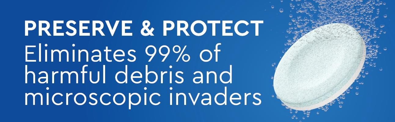 These dentist-grade tablets remove 99% of microscopic invaders, as well as eliminate odor and remove the buildup of particles.